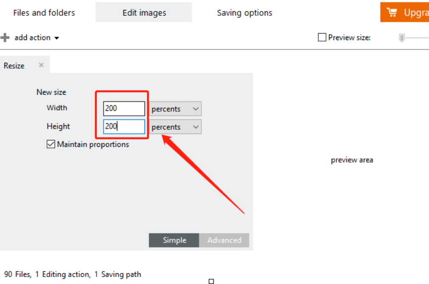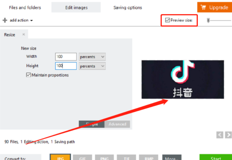 5.点击设置好修改图片的尺寸之后我们勾选Preview size这个按钮可以预览修改图片的尺寸大小。