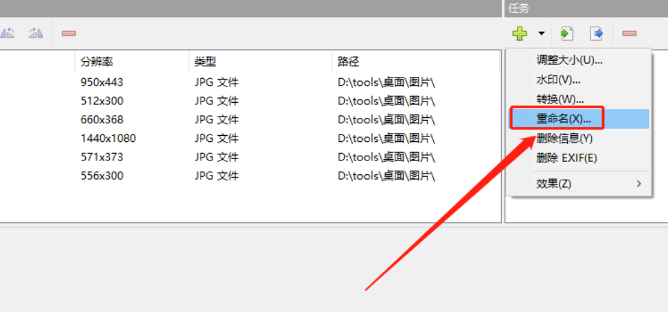 3.点击打开按钮之后等图片加载到软件时,我们就可以点击右边任务界面的加号了,然后选择重命名这个任务。