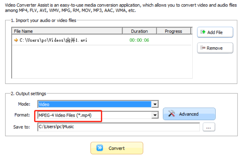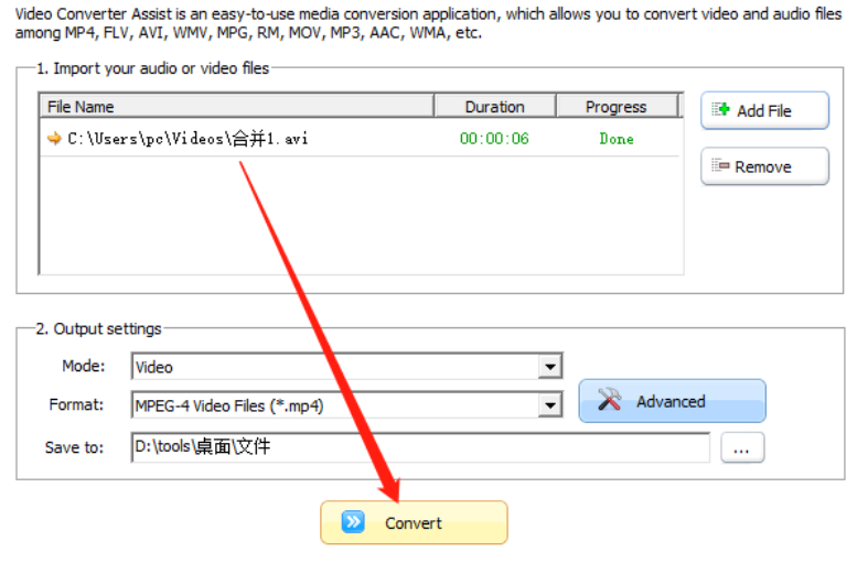 Video Converter Assist将AVI转换成MP4格式的方法步骤