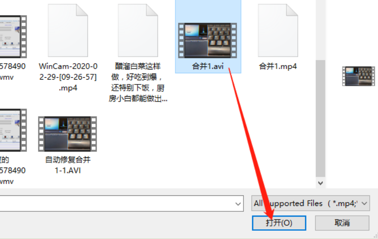 2.点击添加文件按钮之后在出现的选择文件界面中我们就可以选择想要转换的AVI视频了,选中之后点击右下角的打开按钮即可。
