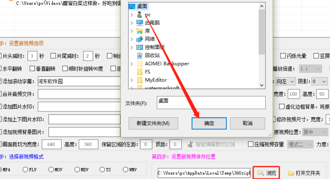 5.设置好滚动字幕之后我们点击下方的浏览按钮,可以自定义选择视频文件的输出储存位置。