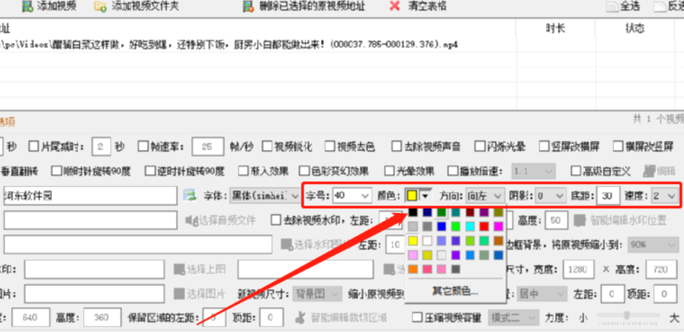 4.设置好字幕的字体之后我们还可以对字幕的字号、颜色、滚动速度等参数进行设置,用户根据自己的具体需求来设置即可。
