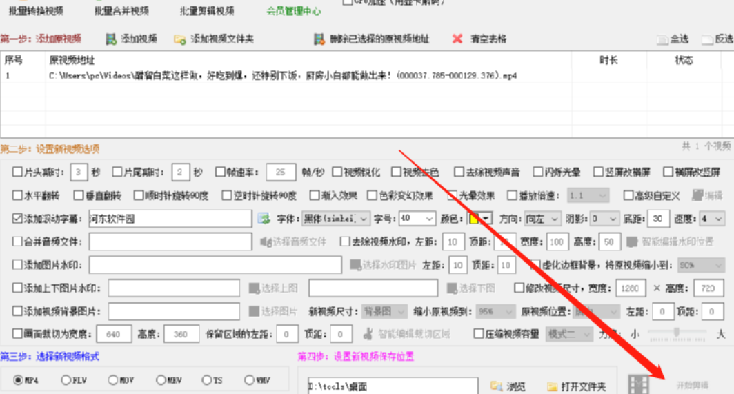 6.最后在设置好文件输出储存位置之后点击界面右下角的开始剪辑这个功能按钮就可以将添加了滚动字幕的视频文件保存下来了。
