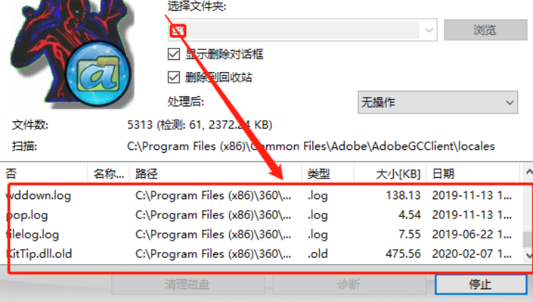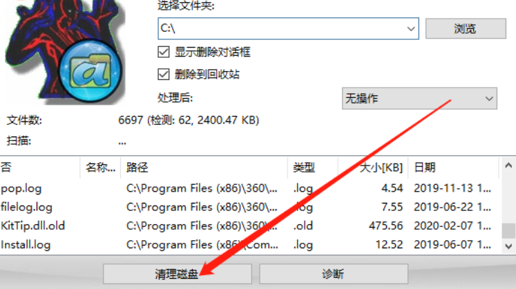 5.最后等到扫描完成我们只需要点击界面下方的清理磁盘这个功能按钮就可以开始强制删除扫描出来的这些文件了。