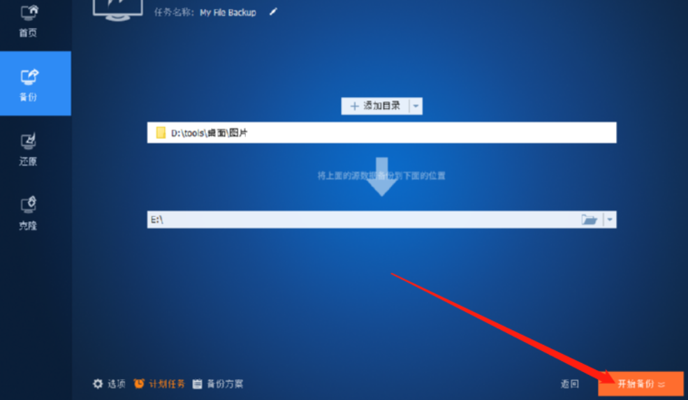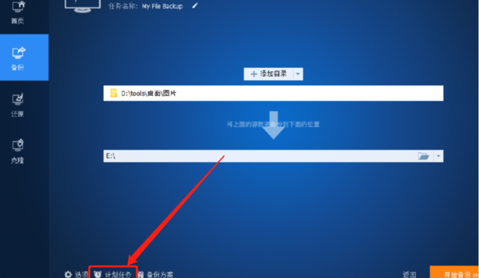 5.设置好备份文件夹的目标路径之后我们点击界面左下方的计划任务选项,点击之后即可设置备份任务执行的时间。