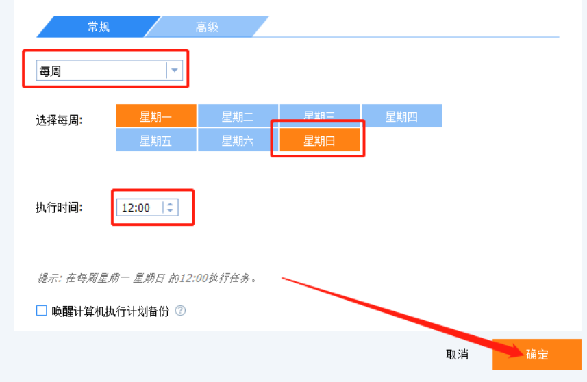 6.点击计划任务按钮之后会出现一个选择设置时间的界面,在这个界面中我们设置好想要定时备份文件夹的时间,然后点击确定按钮。