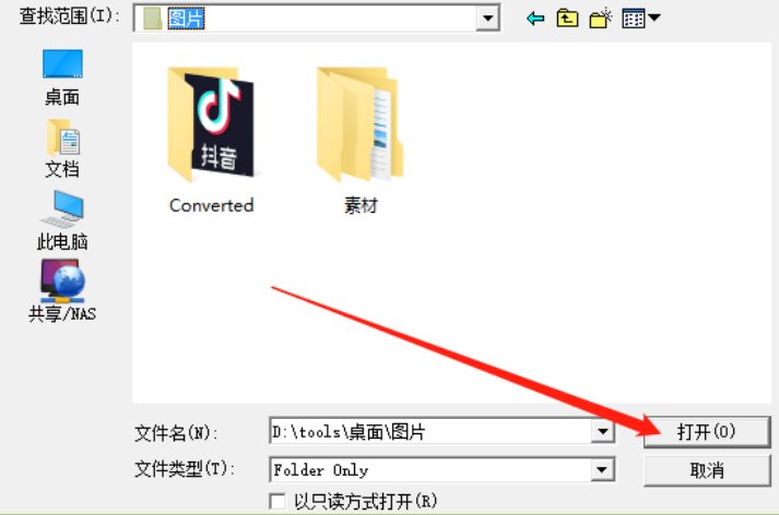 3.点击添加目录之后会打开一个选择文件夹的界面,我们选中想要备份的文件夹之后点击右下角的打开按钮即可。