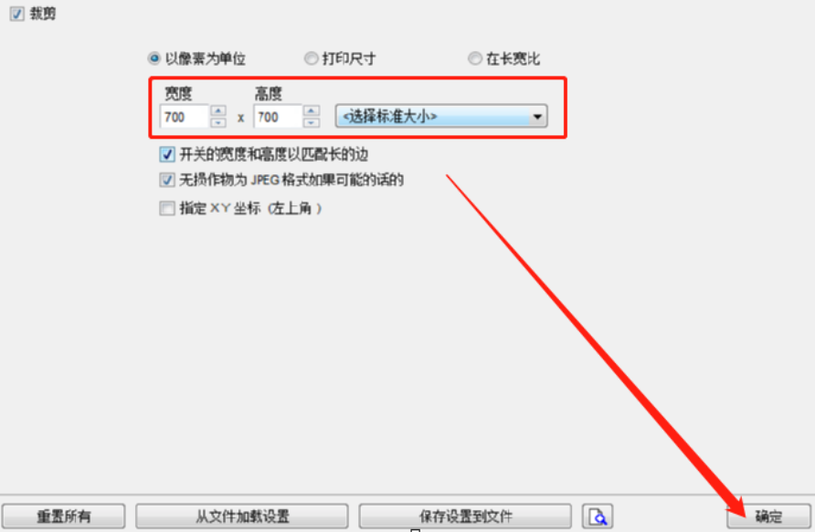 5.勾选裁剪选项之后我们就可以在界面中选择或者输入想要裁剪图片的宽度和高度了,根据自己的需求设置完成之后点击确定按钮。