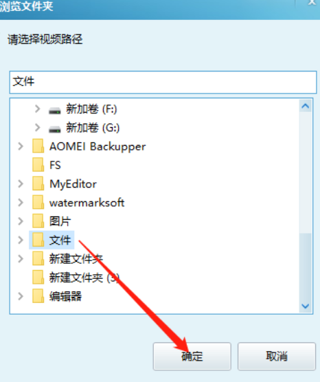 2.点击打开按钮之后下一步需要在出现的选择文件界面中找到视频文件所在的文件夹,找到之后选中它并点击确定按钮。