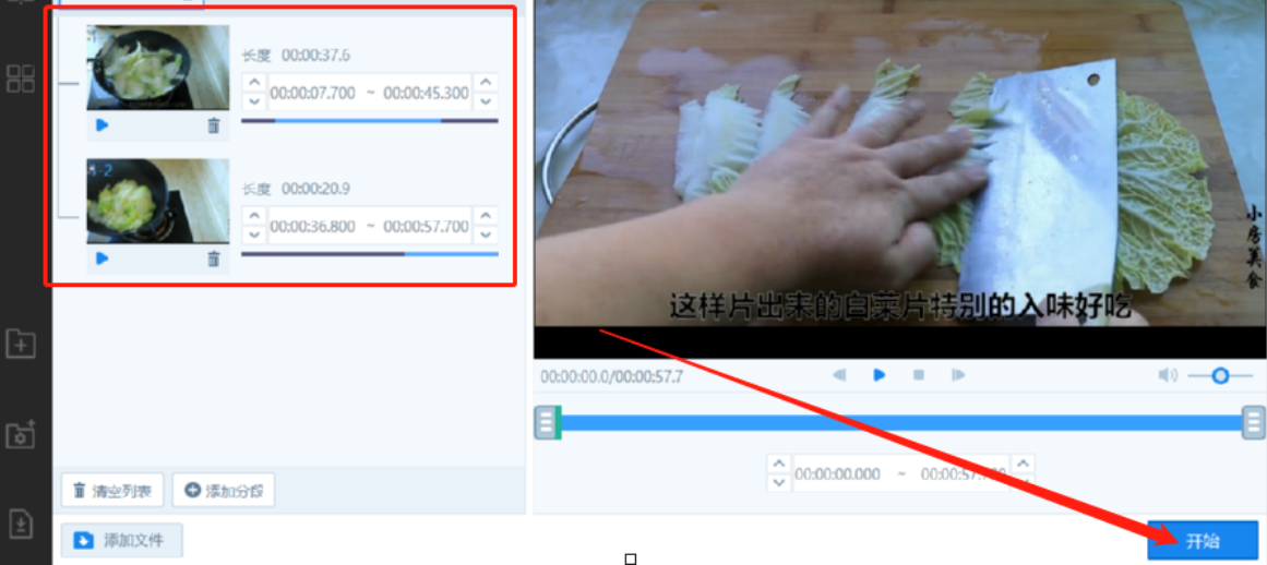 4.根据自己的需求添加分割视频的片段之后,我们点击界面右下角的开始这个功能按钮,点击之后就可以开始分割视频文件了。