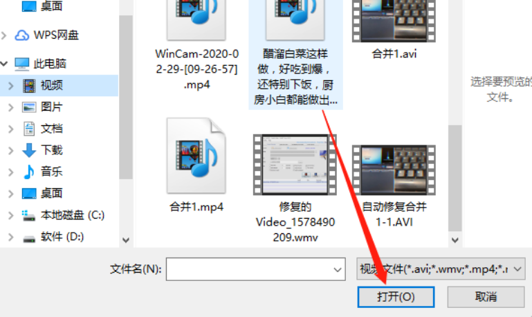 2.点击添加视频之后在打开的选择文件界面中,我们选中目标视频文件之后点击下方的打开按钮即可成功添加视频。