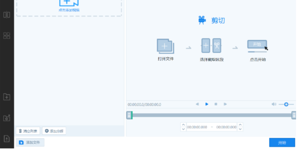 1.首先第一步我们打开软件之后在分割视频这个模块中点击添加视频的图标,添加需要分割的视频文件。
