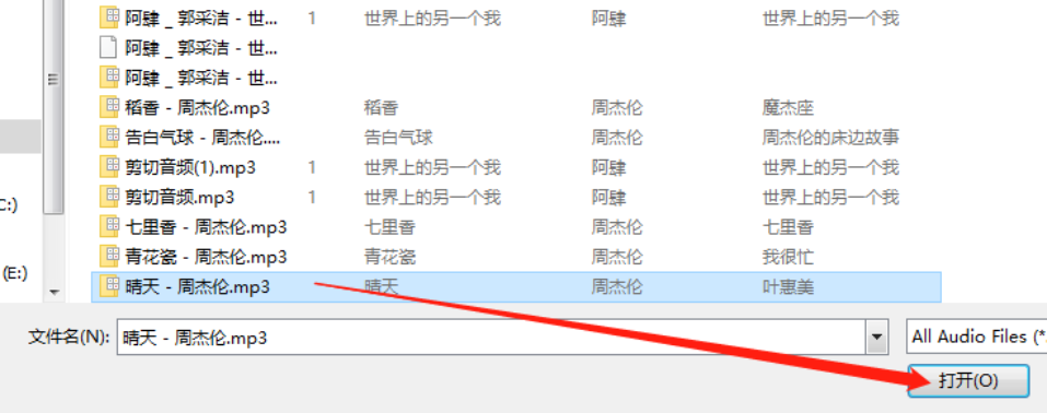 2.点击添加文件按钮之后在出现的选择文件界面中,我们选中目标MP3音频文件之后点击右下角的打开按钮即可。
