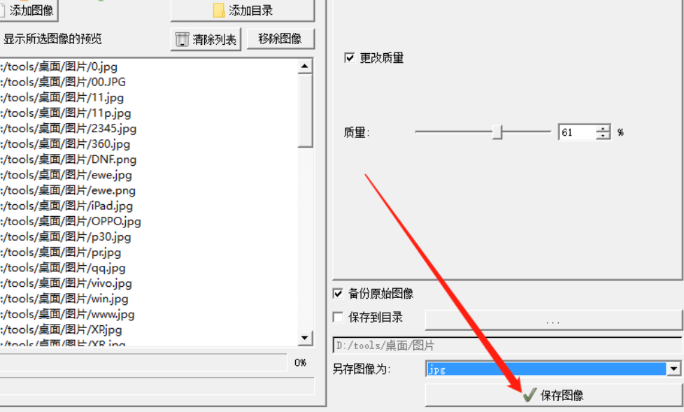 6.最后在设置好压缩图片的格式之后,我们点击界面右下角的保存图像这个功能按钮就可以将这些图片压缩保存下来了。