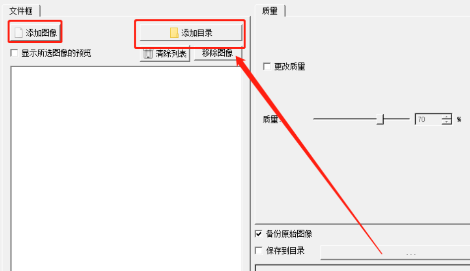 1.首先第一步我们打开软件之后在界面中点击添加图像按钮或者是添加目录按钮来选择要压缩的图片。