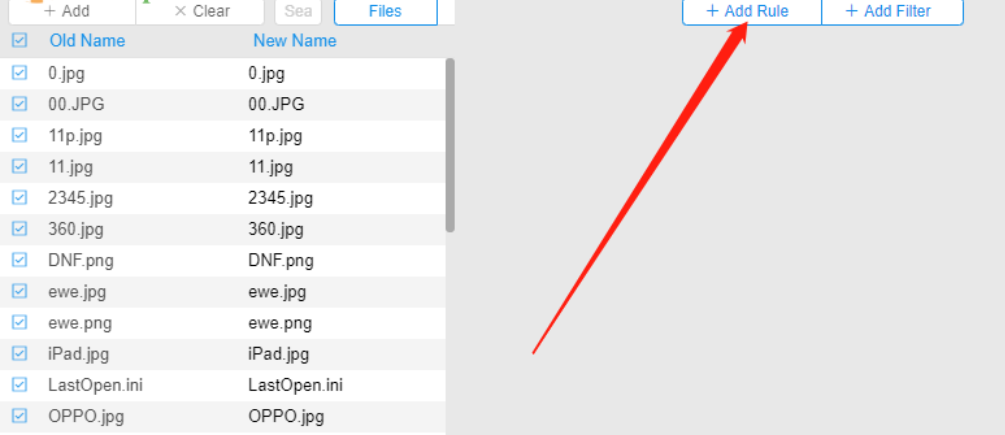 3.点击选择文件夹按钮之后软件就会自动识别在这个文件夹中的图片文件了,然后我们点击右边的Add Rule这个添加规则按钮,可以添加重命名文件的规则。
