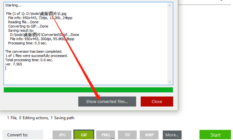 6.等到最后转换完成界面会返回一个转换结果界面,然后点击界面的Show converted files这个按钮即可查看转换的png图像。
