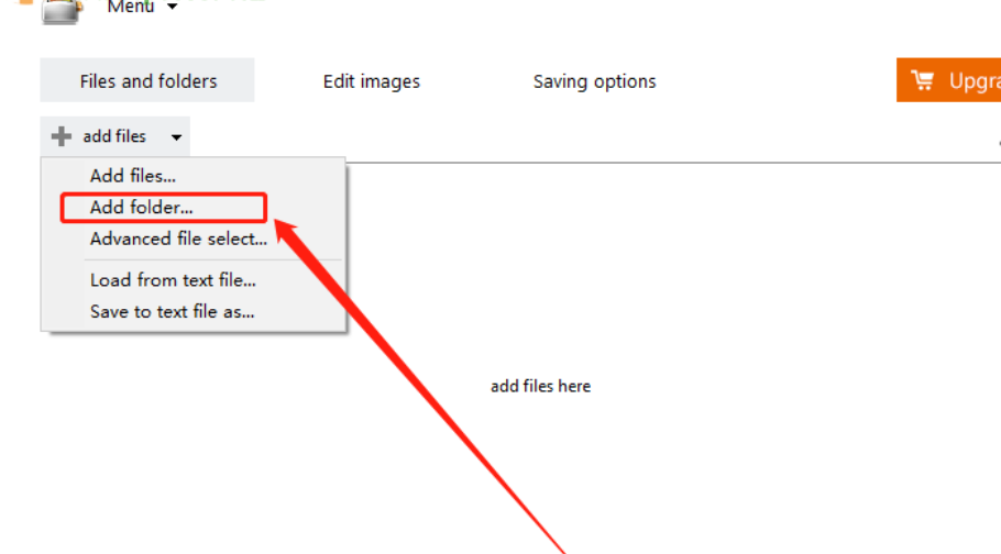 1.首先第一步我们进入到软件界面之后,点击左上方的添加文件按钮,然后在出现的选项中选择Add folder这个添加文件夹按钮。