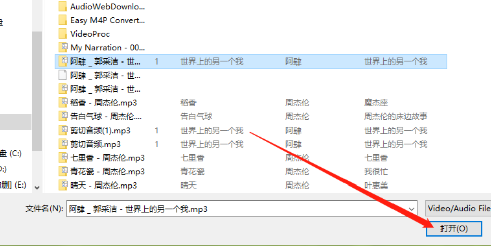2.点击添加按钮之后下一步在选择文件的界面中我们选中想要转换的MP3音频文件之后,点击界面右下角的打开按钮。
