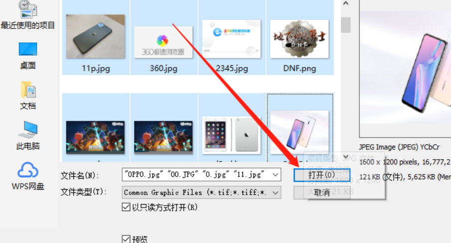 2.点击添加图标之后就会打开选择文件的界面了,在这个选择文件的界面中我们选中所有要处理的图像之后点击打开按钮。
