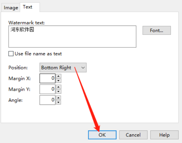 5.设置好水印文字的样式之后,我们可以设置水印在图像中的位置,设置完成之后点击OK按钮即可保存文字水印的相关设置。