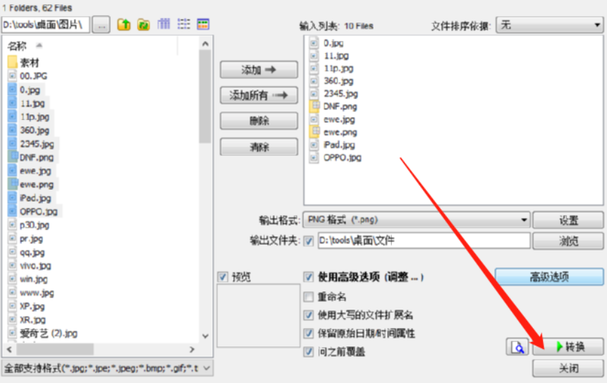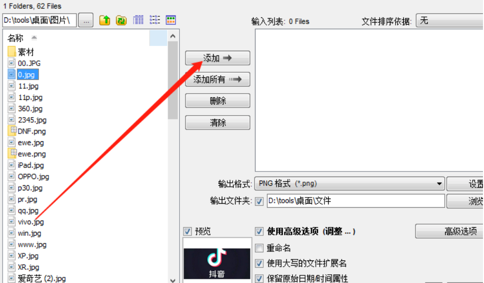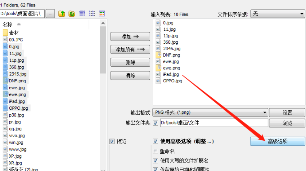 3.点击他们添加到输入列表之后我们在界面右下方找到高级选项这个功能按钮,点击之后进入到高级功能设置界面中。