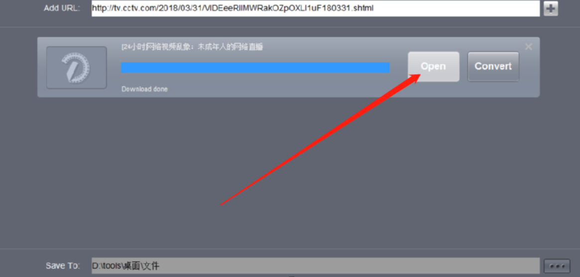 5.最后等到视频下载完成之后,我们在界面中可以看到下载进度,点击Open按钮即可打开下载好的视频文件进行查看。
