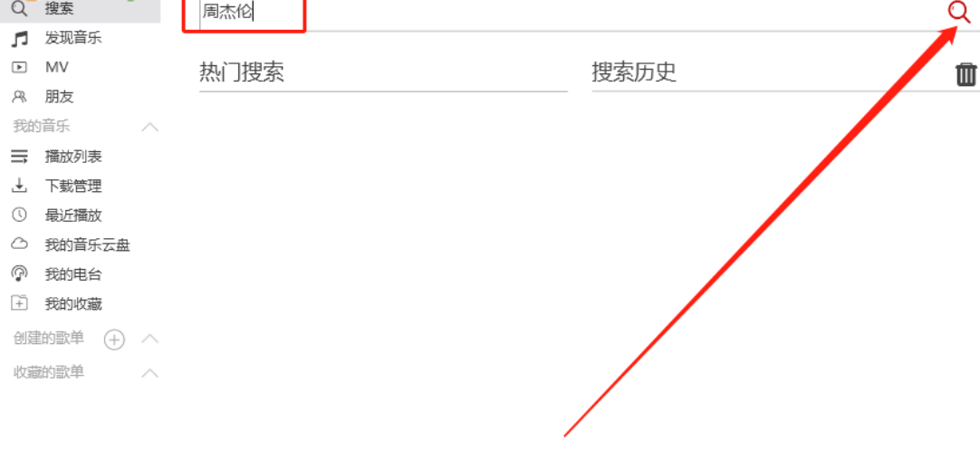2.输入想要下载歌曲的歌手名称之后我们点击搜索框后面的搜索图标,如下图中所示。