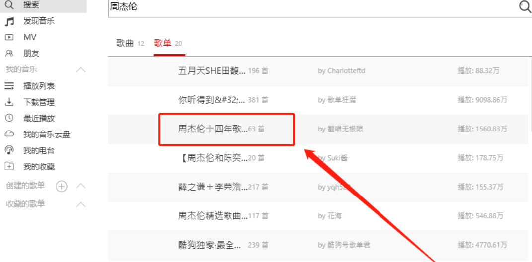 4.切换到歌单界面之后我们就可以点击进入到自己想要批量下载歌曲的那一个歌单当中了,如下图中所示。