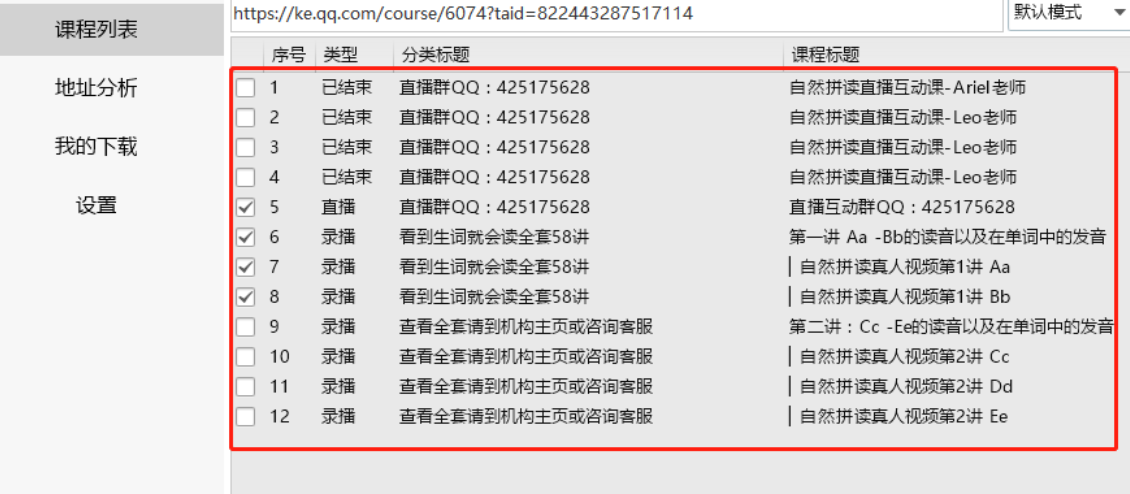 2.点击这个读取按钮之后等待一会在界面中就会显示读取到的网页链接中的视频课程了,如下图中所示。
