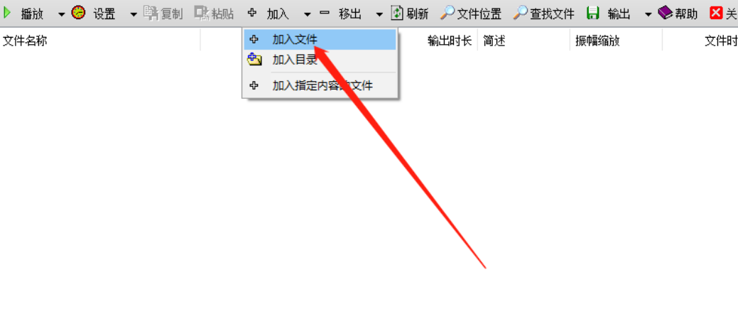 2.进入到合并音频的功能界面之后我们点击界面中的加入按钮,然后在出现的选项中选择加入文件选项。