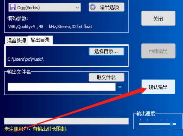 8.最后设置好输出路径之后我们回到输出合并文件的界面,点击界面中的确认输出这个功能按钮即可合并输出音频文件。