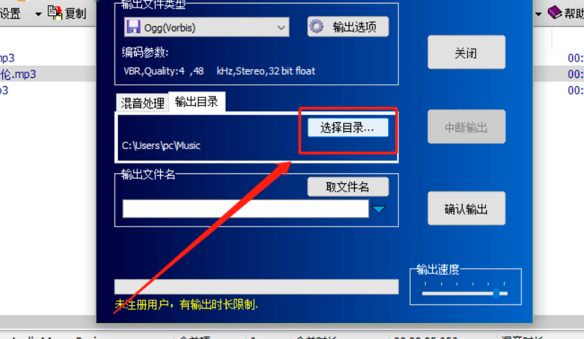 6.切换到输出目录选项之后点击选择目录按钮即可选择想要输出保存文件的目录,如下图中所示。