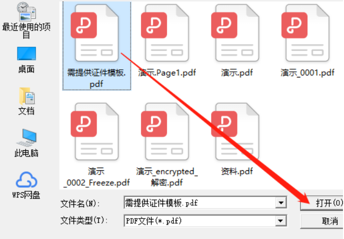 2.点击添加文件按钮之后在出现的界面中选择想要解锁的PDF文件,选中之后点击右下角的打开按钮。
