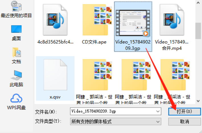 2.点击添加文件按钮之后会打开一个选择文件的界面,在这个界面中我们选中目标视频文件之后点击打开按钮。