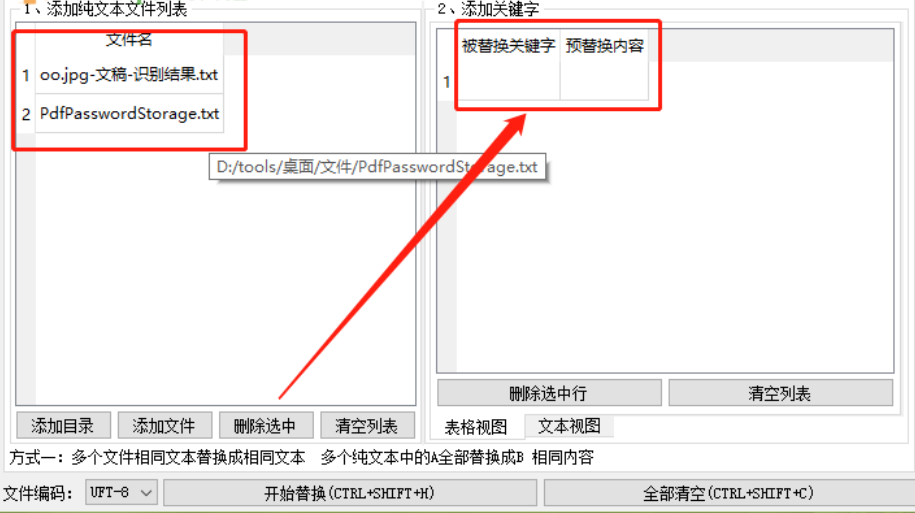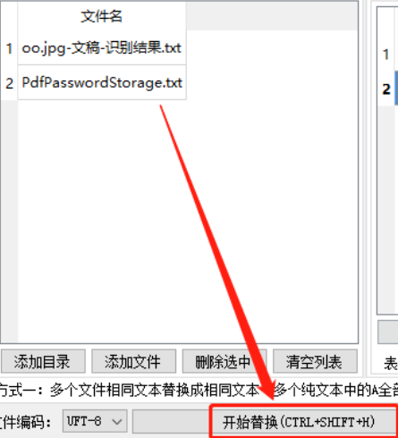 3.点击这个选择按钮之后我们在软件界面中就可以看到在文件夹中识别出来的一些TXT文件了,然后下一步需要在界面右边填写被替换的关键字和想要替换的内容。