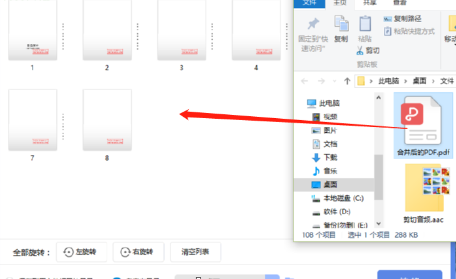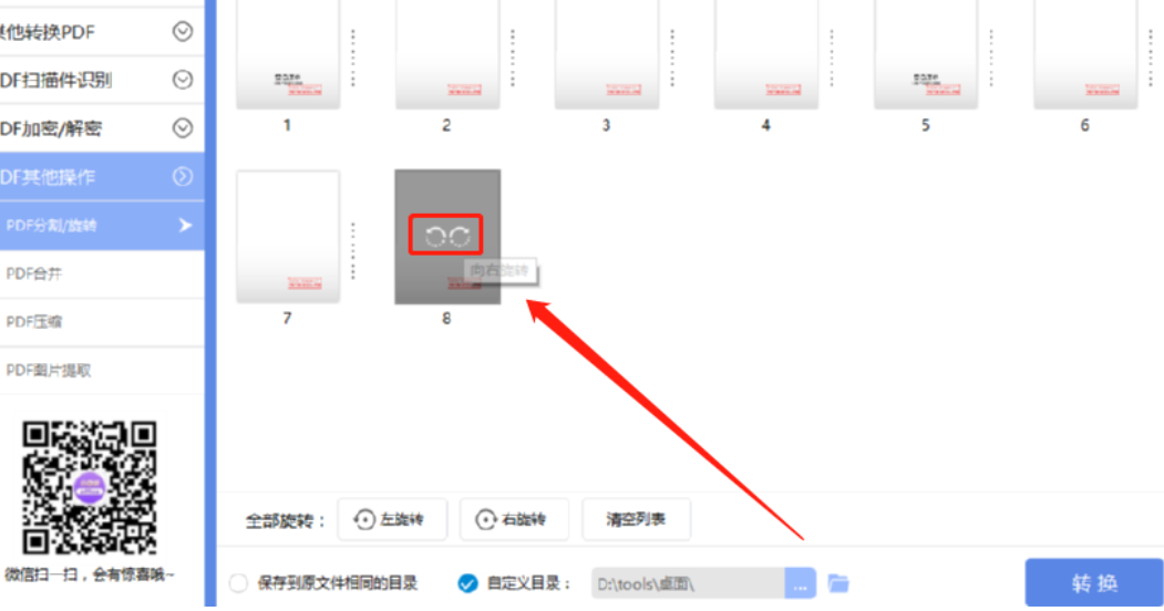 3.拖拽到软件界面之后我们在软件中就可以看到PDF文件的所有页面了,将鼠标移动到某个页面上方可以对该页面进行左旋转和右旋转。