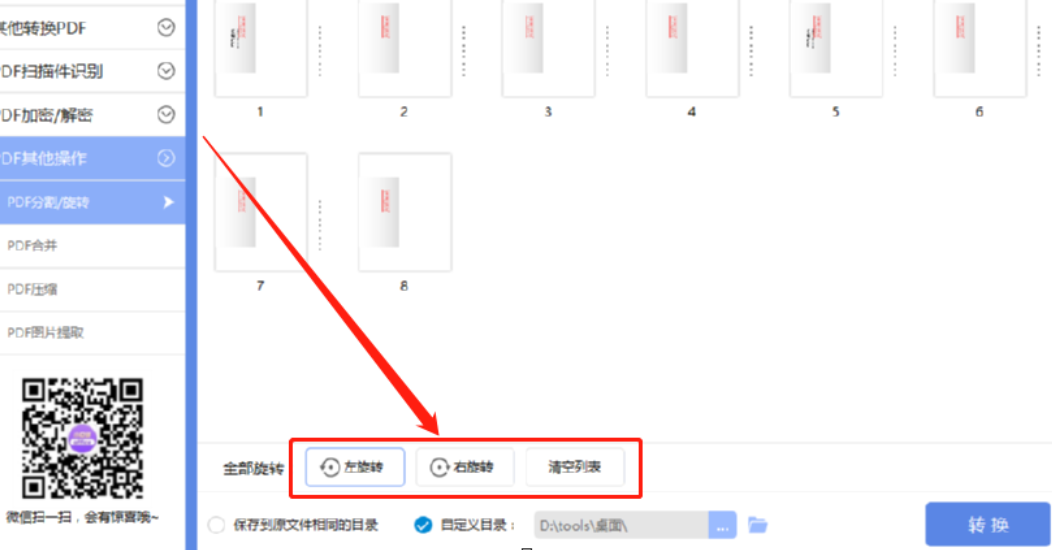 4.另外我们也可以点击界面中的全部转换选项的左旋转功能或者右旋转功能,可以旋转PDF文件中全部的页面。