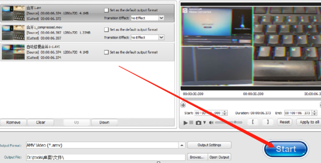 6.最后我们设置好输出路径就可以点击软件界面右下角的Start这个开始按钮来开始合并视频文件的操作了。