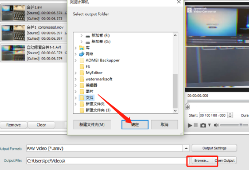 5.另外我们点击界面中的Browse这个浏览按钮可以打开选择视频合并后输出路径的界面,在这个界面中我们根据个人的需求来选择设置输出路径即可。