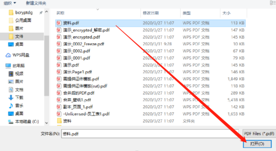 2.点击添加PDF文件之后在出现的选择文件界面中我们选中想要转换的PDF文件之后点击界面右下角的打开按钮就可以了。