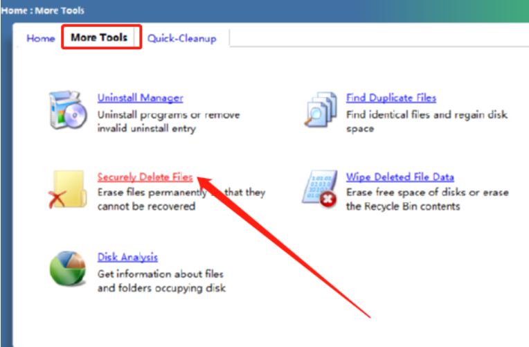1.首先第一步我们打开软件之后,在界面中找到More Tools这个更多工具界面,然后点击Securely Delete Files这个功能选项。