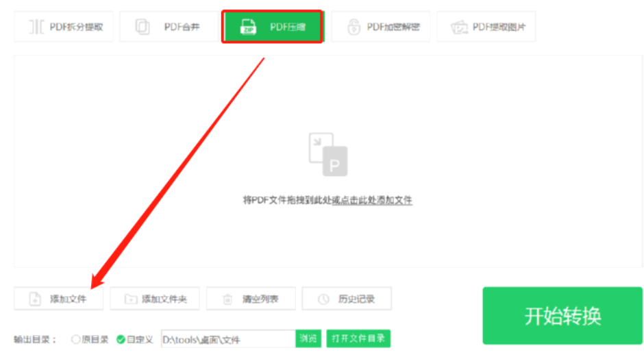 5.等到设置好文件压缩之后的输出路径以后,我们就可以点击界面右下角的开始转换这个功能按钮来开始压缩PDF文件的操作了。
