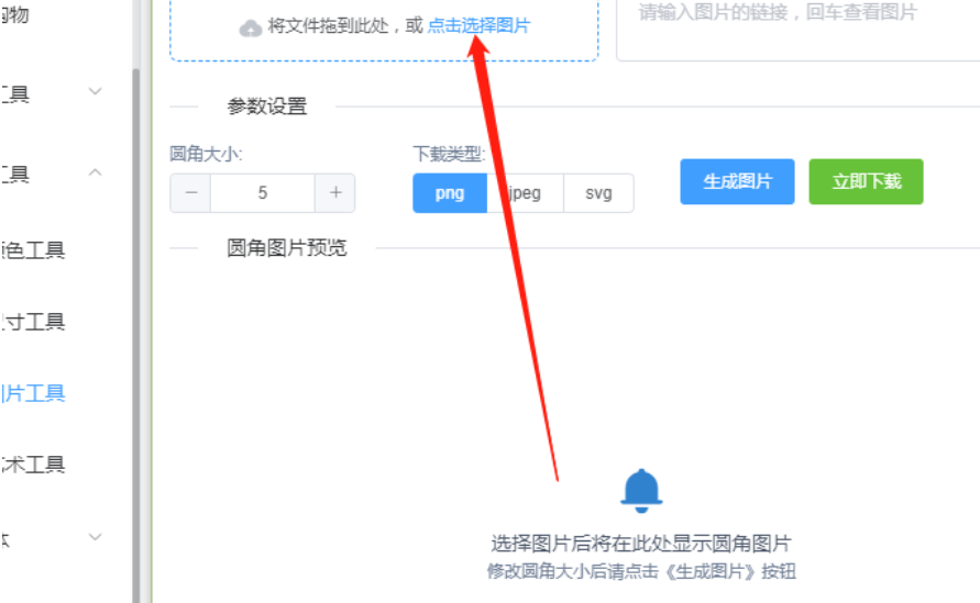 5.将想要转圆角的图片添加进来之后我们就可以点击界面中的“-”“+”来调整图片圆角的大小了,点击生成图片可以预览效果。