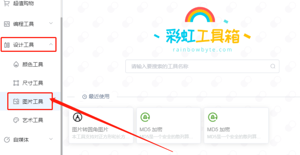 彩虹工具箱如何将图片转换成圆角图片?彩虹工具箱是一款功能非常丰富的软件,其中包括编程工具、设计工具、自媒体等多个种类的工具,接下来正软小编将带大家一起学习,希望大家喜欢。