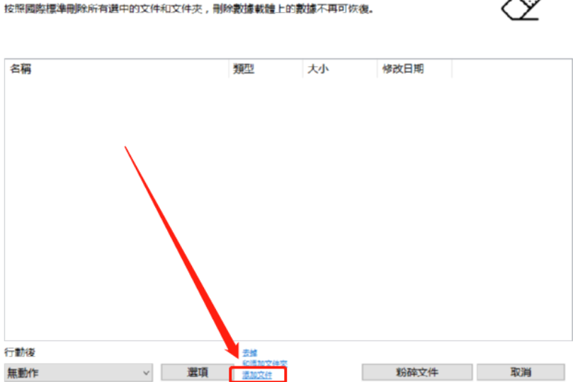 2.点击进入到永久删除文件这个功能界面之后,我们点击界面下方的添加文件这个选项,准备添加想要永久删除的文件。