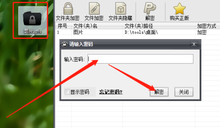 6.最后我们找到桌面上被加密的文件夹之后,双击打开它就会需要输入加密文件夹的密码来解密进行查看文件夹了。