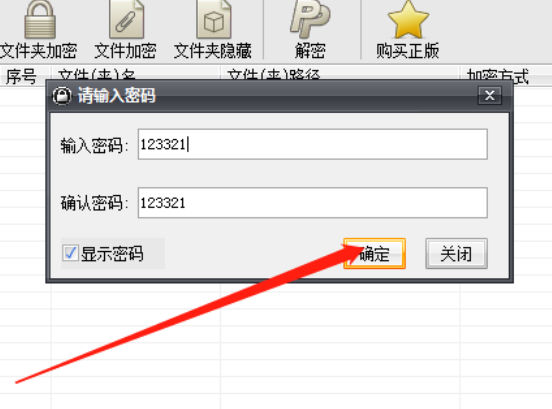 3.点击这个确定按钮之后就需要开始输入加密文件的密码了,输入完成之后我们可以勾选显示密码这个功能查看一下密码有没有填错。