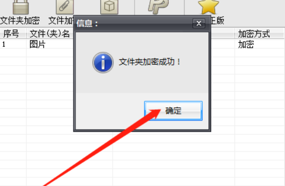 5.点击确定按钮之后软件就会开始加密选择的这个文件夹,加密完成之后会显示文件夹加密成功的提示界面。