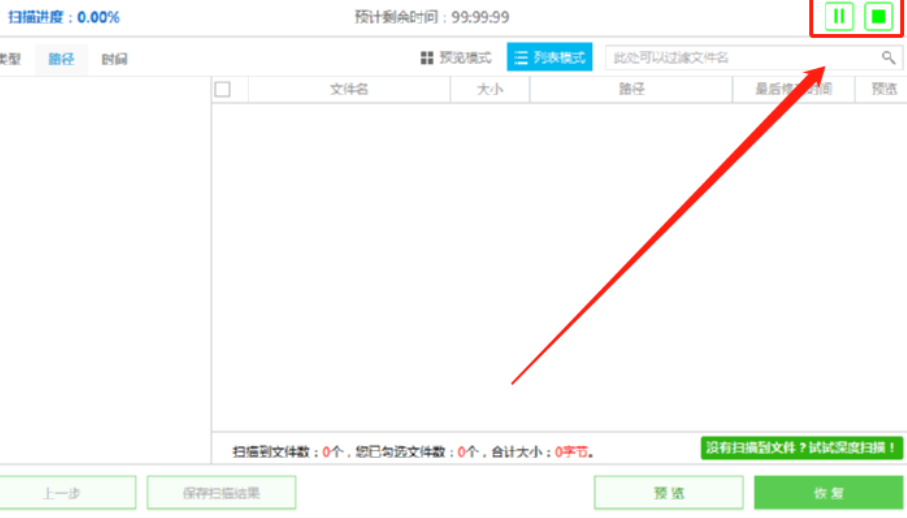 3.点击这个下一步按钮之后在界面中就可以看到正在扫描的进度了,然后我们可以点击暂停或者停止按钮来控制扫描操作。